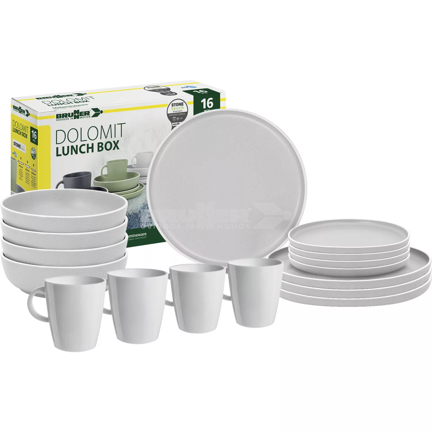 Thanks to the innovative STONE TOUCH material, made from a combination of melamine and mineral powder, the difference between an ordinary melamine plate and a classic porcelain plate is barely noticeable.